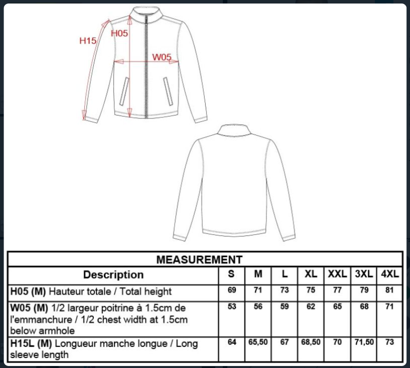 • Sizes: S – M – L – XL – XXL – 3XL – 4XL