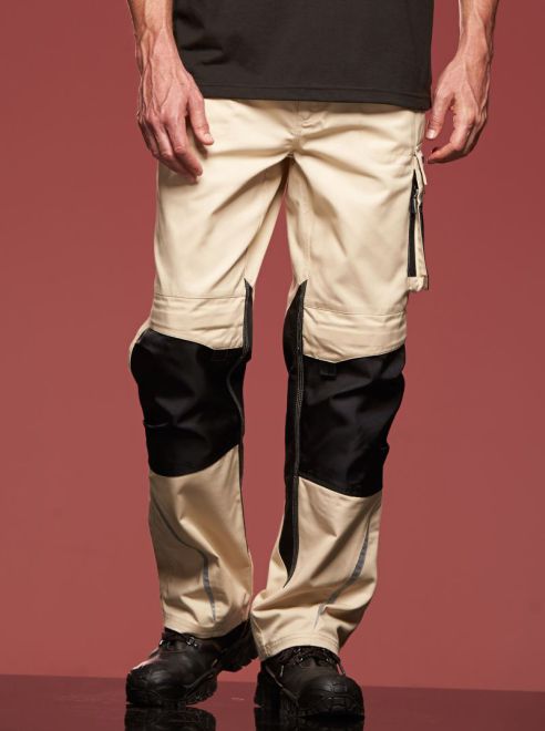 - 260g/m², 65% polyester, 35% cotton, trimming: 100% polyamide Cordura®Elastic hem with belt loops, kneepad pockets reinforced with Cordura®, 2 pockets with zip, various slip- and tool pockets, durable fabric, reflective elements (without protective function) at the front and back, 60° washable, suitable for tumble drying, available in 3 lengths, in the webshop: short 02.832S, medium 02.832M/02.832X, long 02.832L, from size 62 Art.Nr. 02.832X