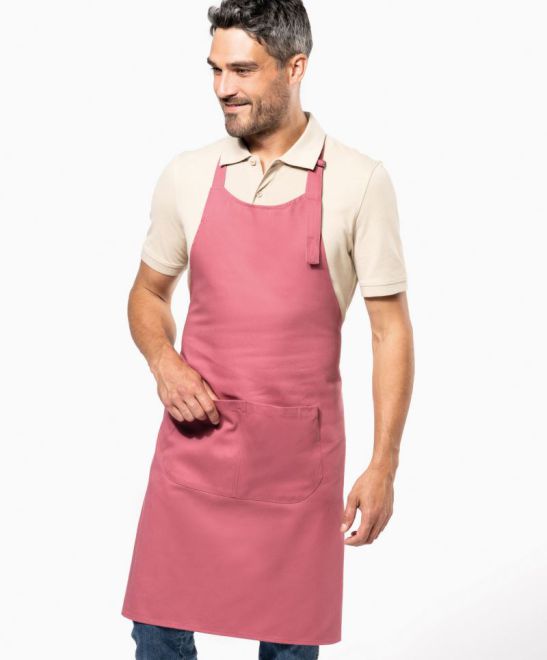 Neck tie with adjustable metal buckle, front pocket: 20×31.5cm, long waist straps, size: 76cm wide, 90cm long, 60° washable, suitable for tumble drying at low temperature, do not dry clean